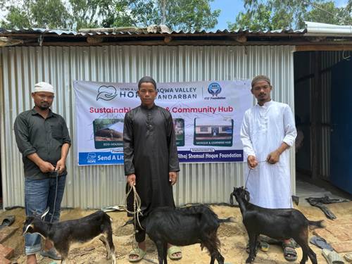 As part of an initiative by the Alhaj Shamsul Hoque Foundation, 5 goats, 14 saplings, and 20 chickens have been gifted to newly converted Muslim families living in the remote areas of Lama, Bandarban.
