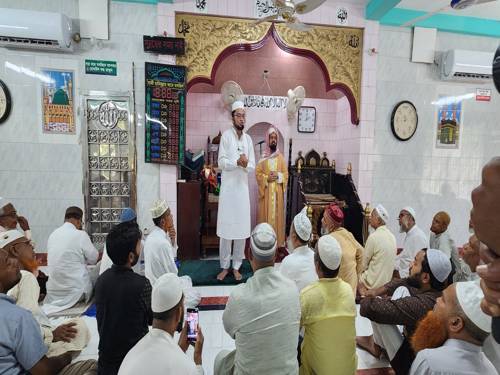 Following the blessed Jummah prayer, a special address was delivered by the respected chairman of the Alhaj Shamsul Hoque Foundation regarding the ongoing humanitarian aid efforts in Gaza.