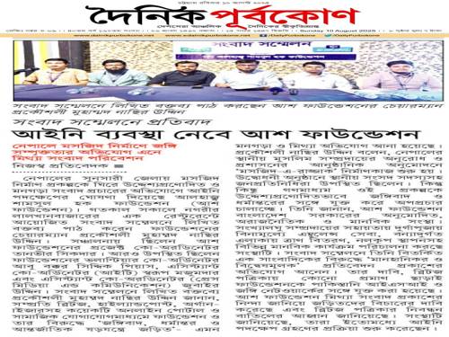 At a press conference on Saturday morning in Chittagong's Lalkhan Bazar, the organization's chairman, Engr. Muhammed Nasir Uddin stated that several online portals, including Blitz, Highland Post, and Organiser—along with social media- have recently spread "deliberate false information" against ASH Foundation and him.