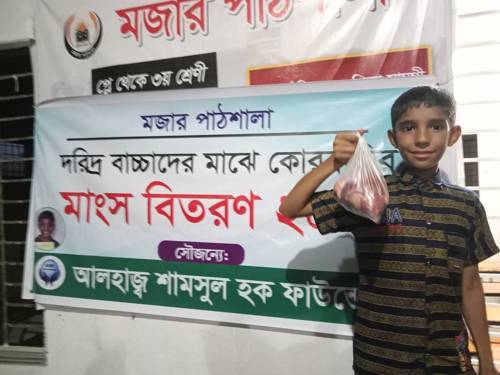 Thanks to the generous support of the Alhaj Shamsul Hoque Foundation, Qurbani meat was distributed among the underprivileged students of Mojar Pathshala—so they too could be part of the joy of Eid.