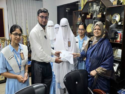For the oppressed people of Gaza, the esteemed Principal of Viqarunnisa Noon School and College, Ms. Majeda Begum, hands over a donation package worth over one lakh Taka—raised through the …